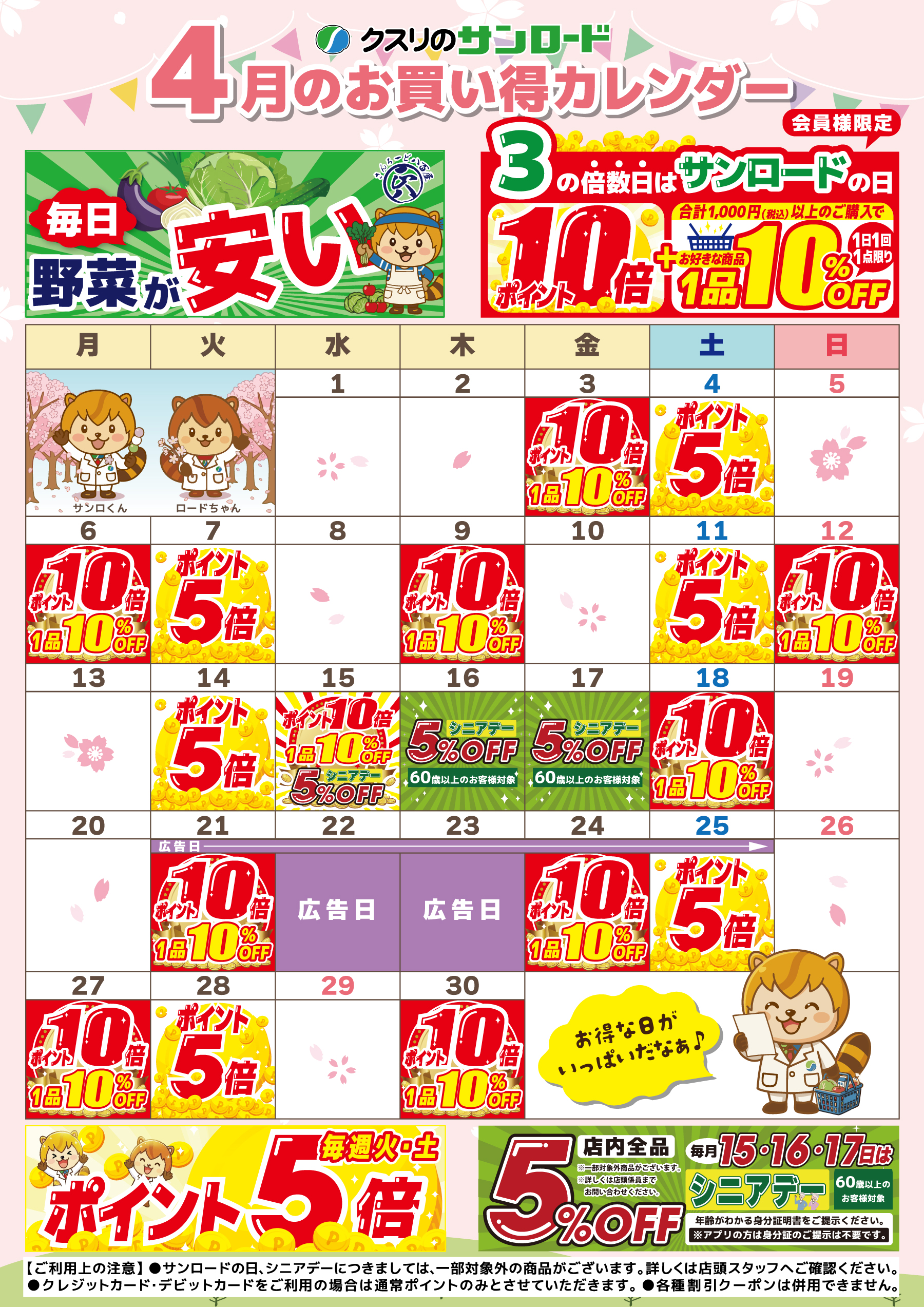 クスリのサンロードは、皆さまの新しい毎日を「お得」でしっかり応援します。