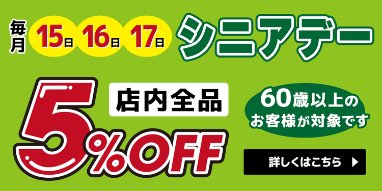 60歳以上の方が主役の3日間✨店内全品5%OFF💨(一部対象外あり)