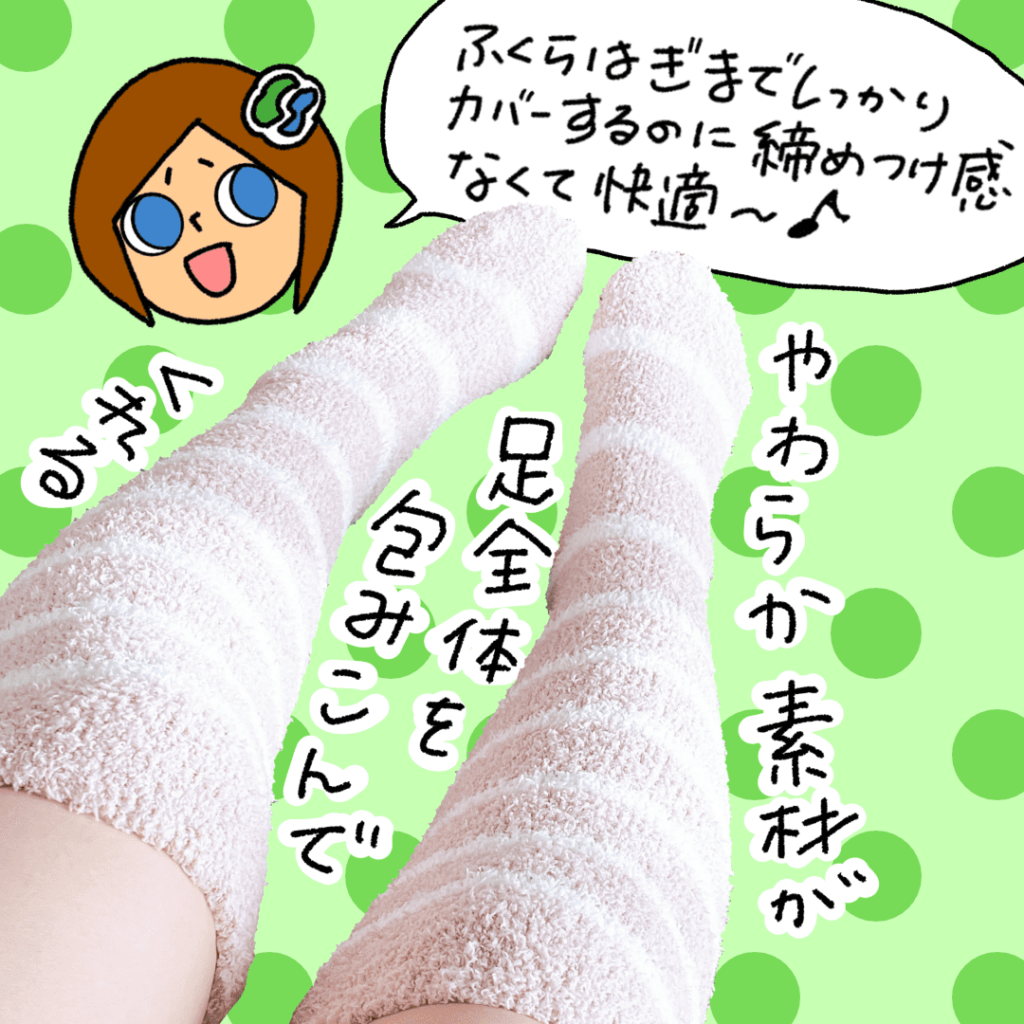 膝下まであるロングタイプで足全体を包み込む。
