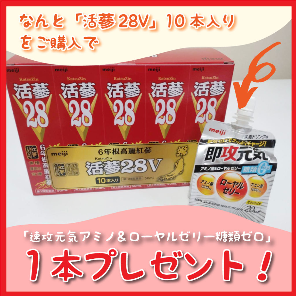 なんと今なら数量限定で「活蔘28V」の10本入りをご購入で