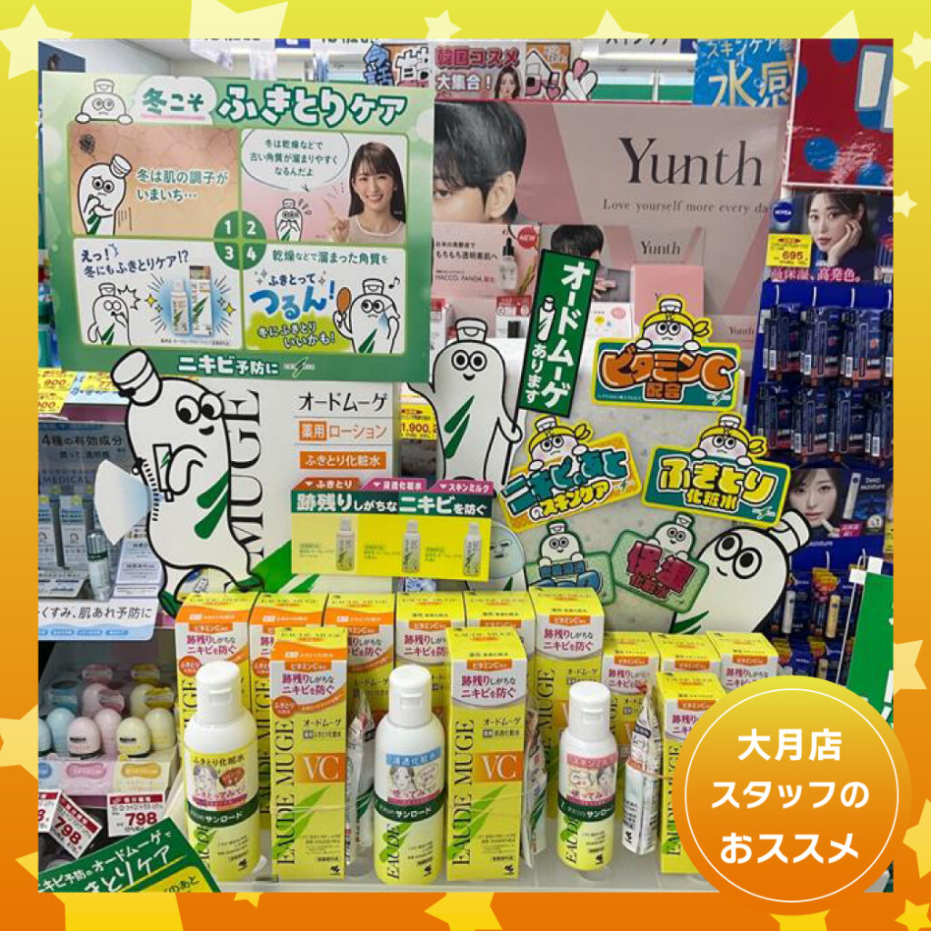 ふきとり化粧水・浸透化粧水・スキンミルクシリーズで試してみてテスターご用意しております。ぜひクスリのサンロード大月店にご来店して使用感をお試しください。
