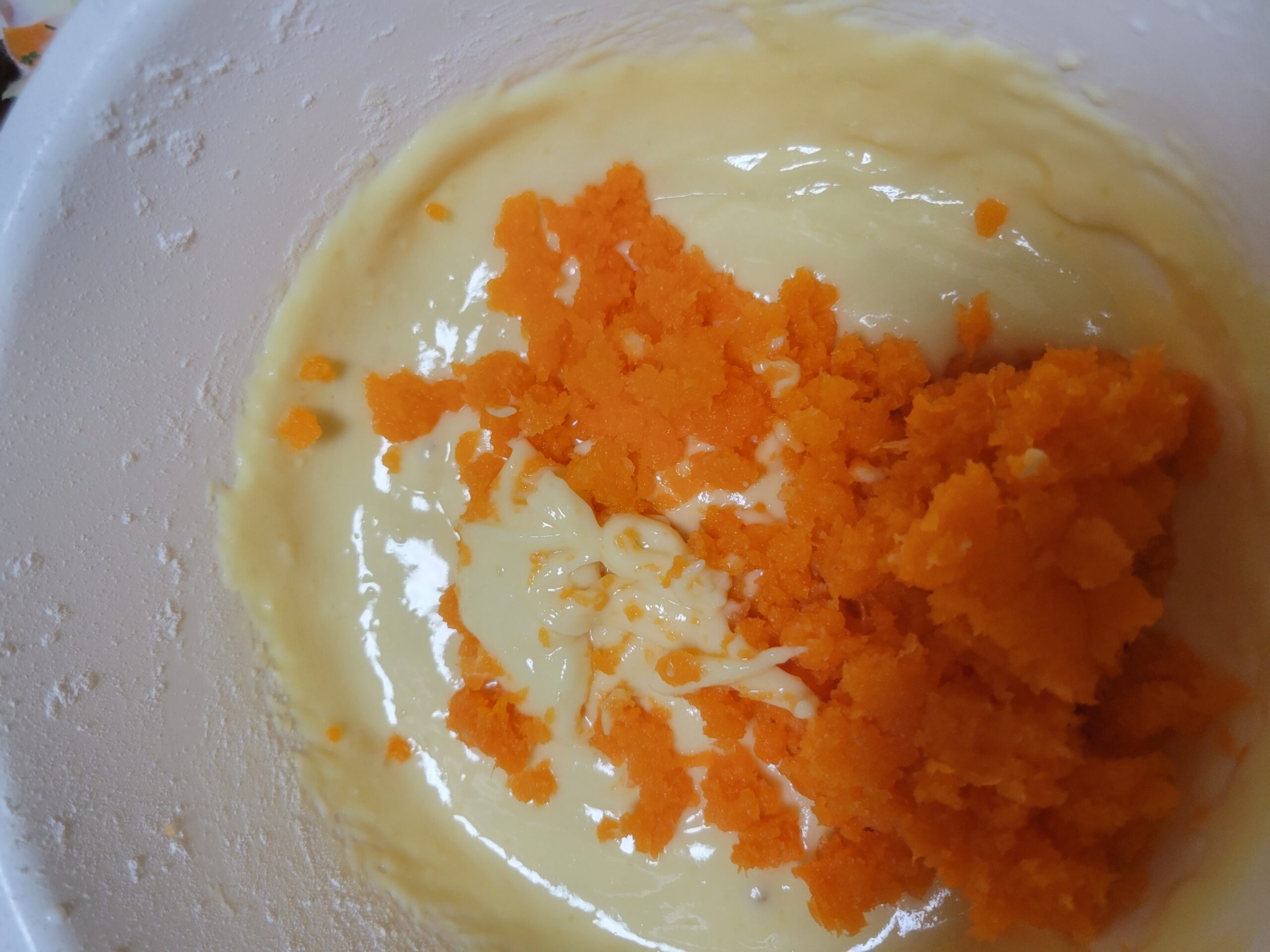 ④すりおろしたにんじんを入れて混ぜる。