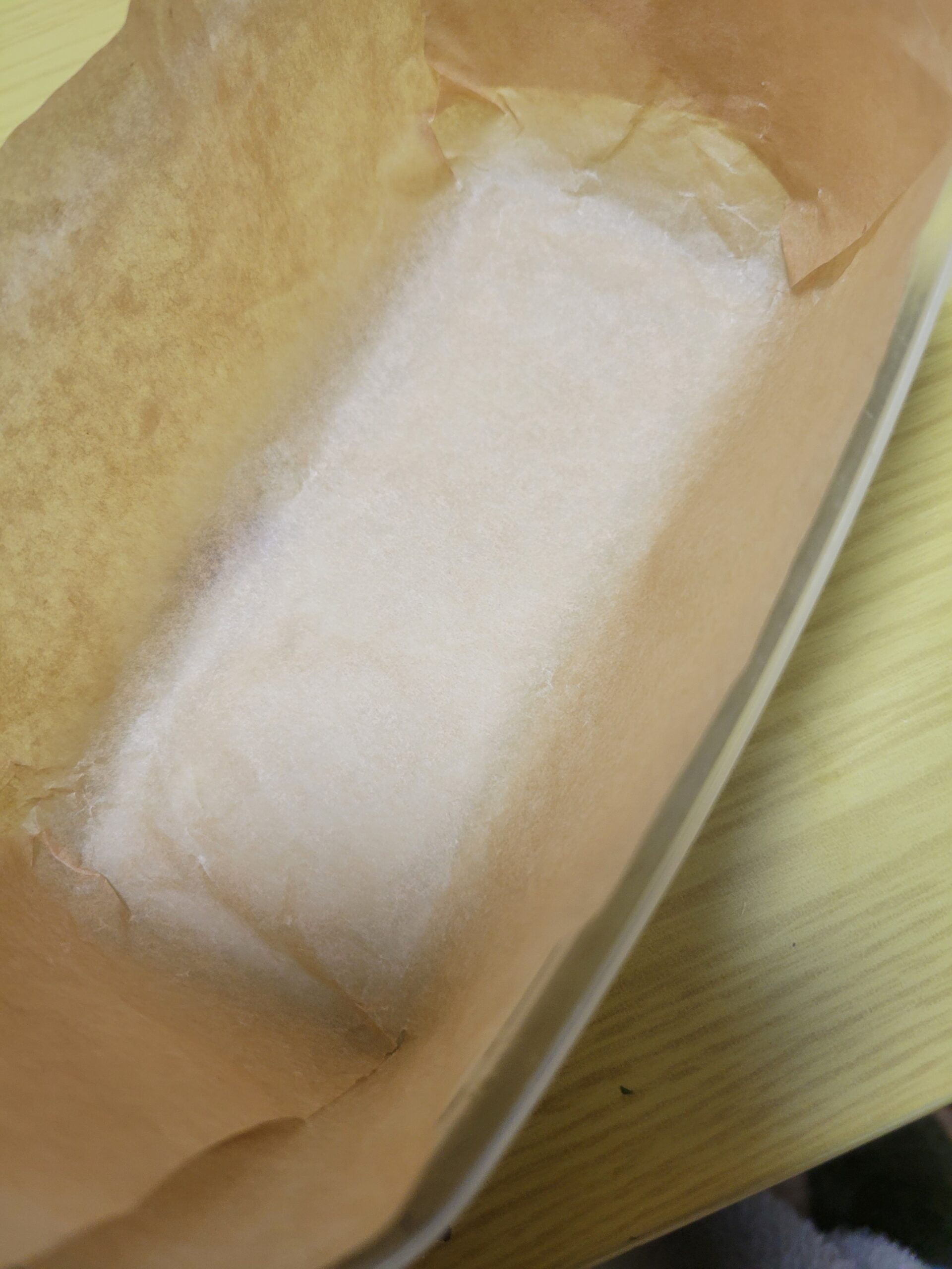 ①タッパーにクッキングシートを敷いておく。