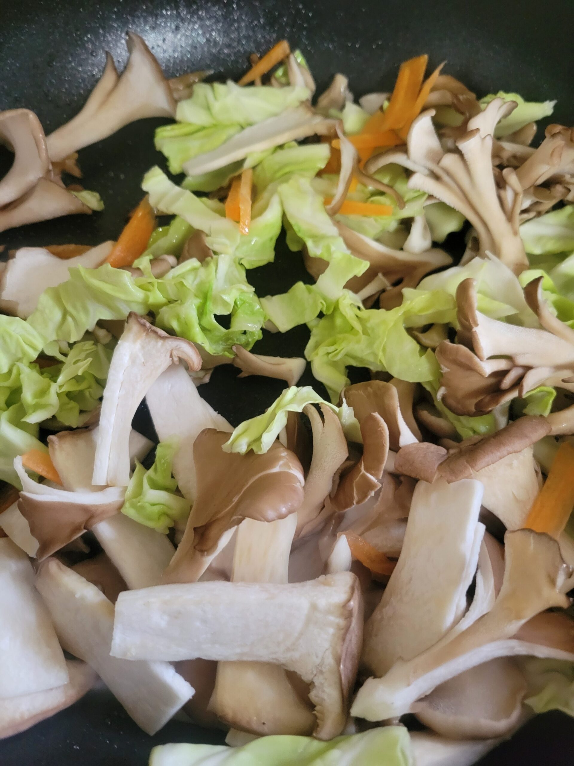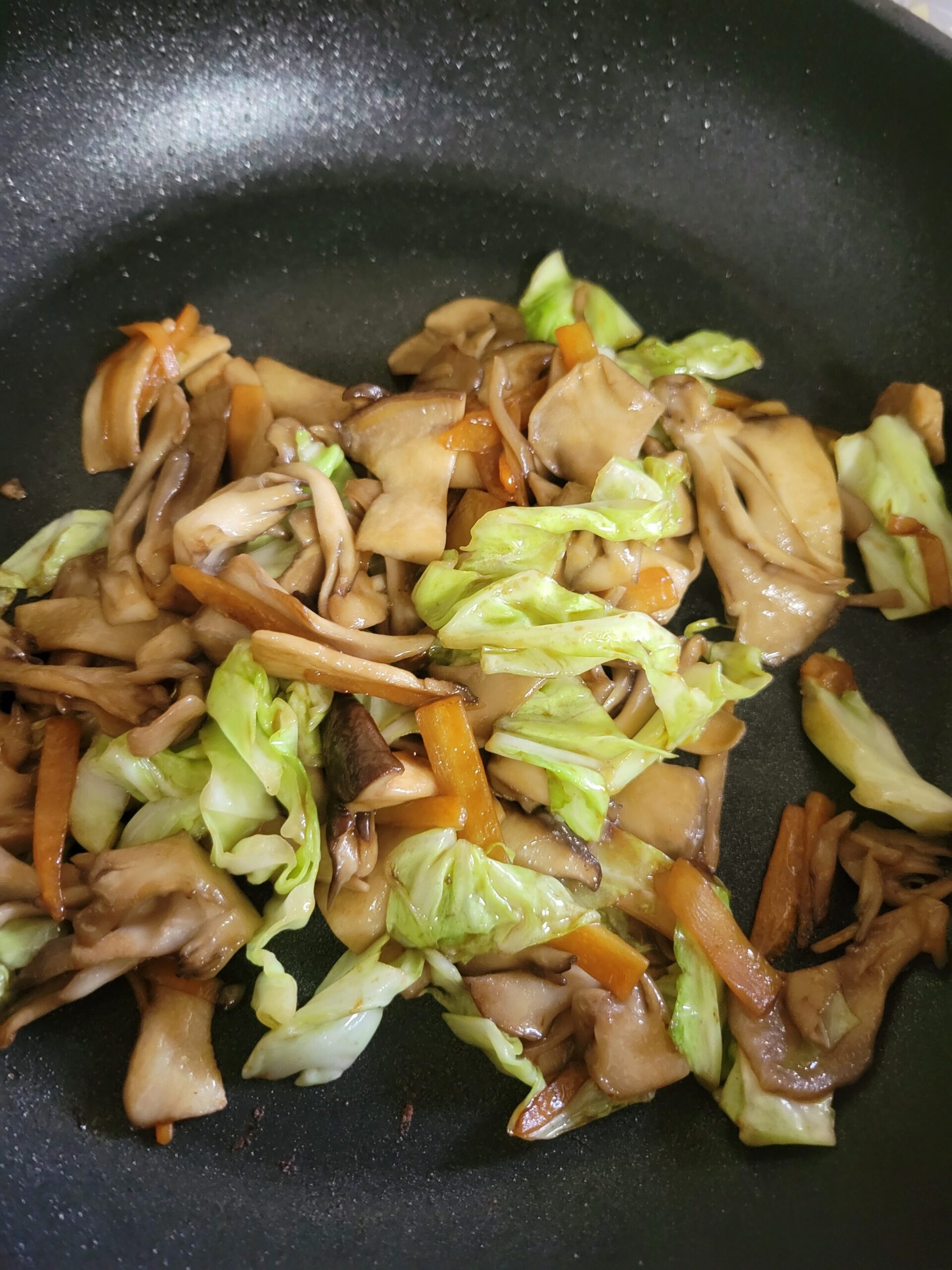 きのことキャベツとにんじんのオイスターソース炒め