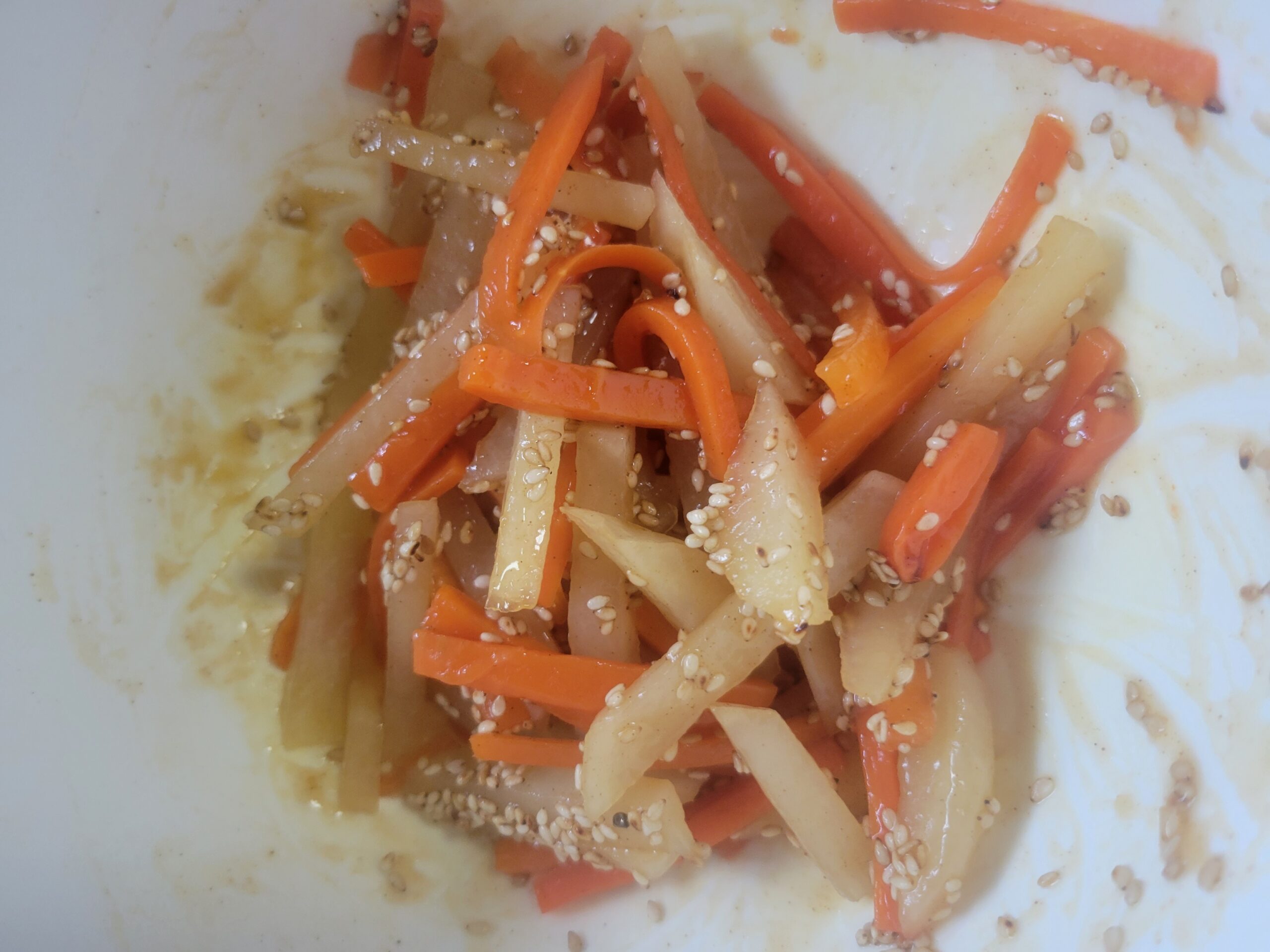 レンチンでおいしい!じゃがいもとにんじんのきんぴら(2人分)