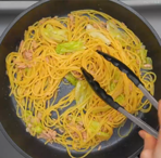 ④水分がなくなったら、油を軽く切ったツナ缶、ほんだしを入れ混ぜます。