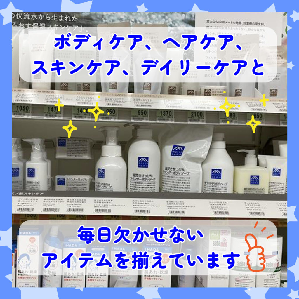 商品は「松山油脂のMマークシリーズ」